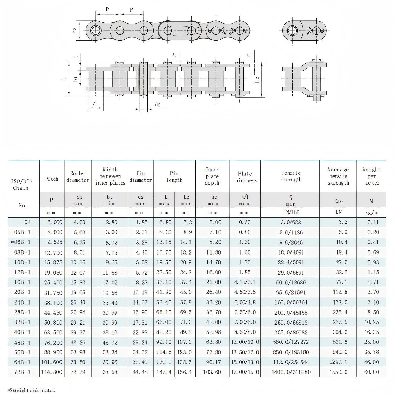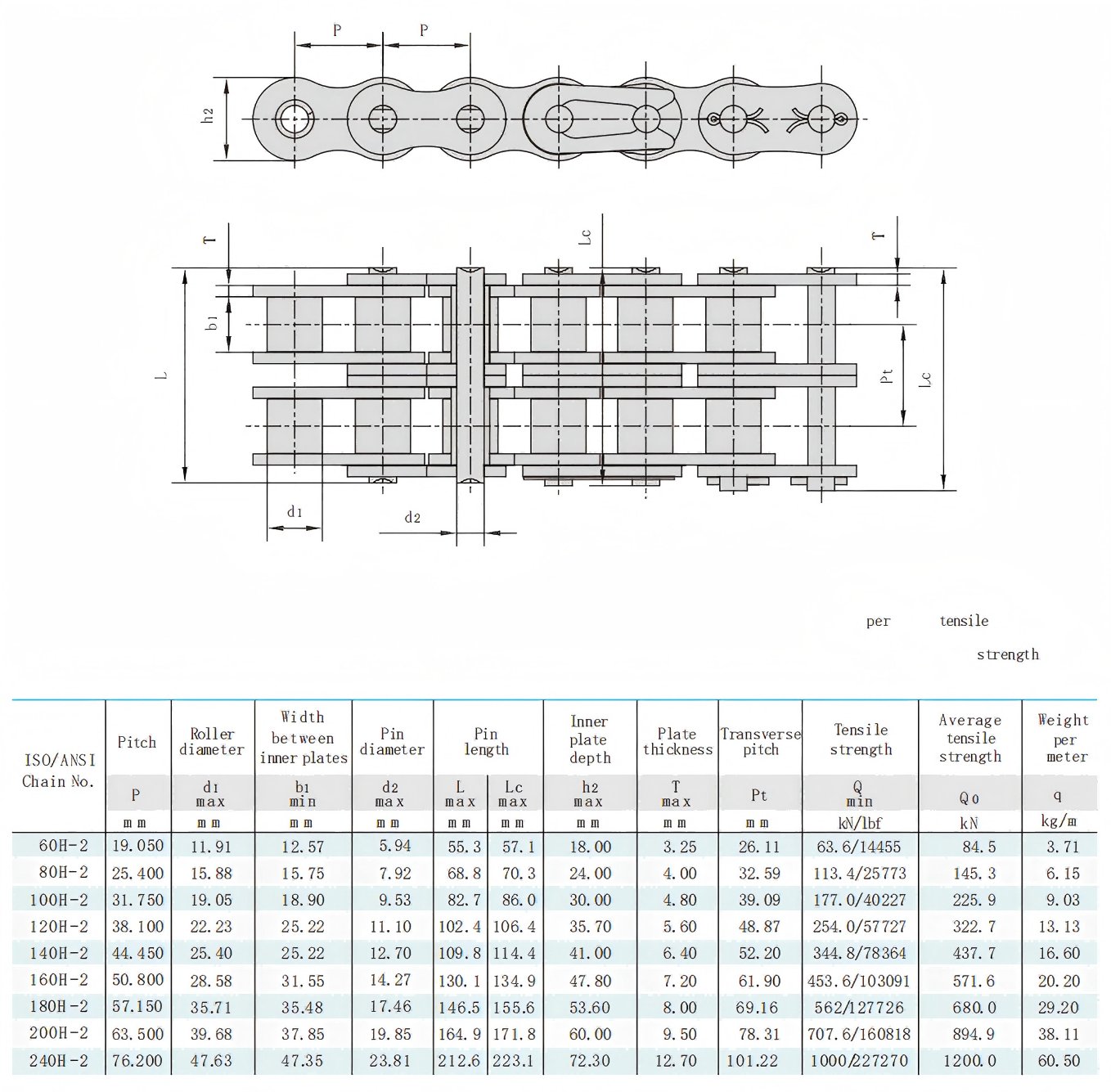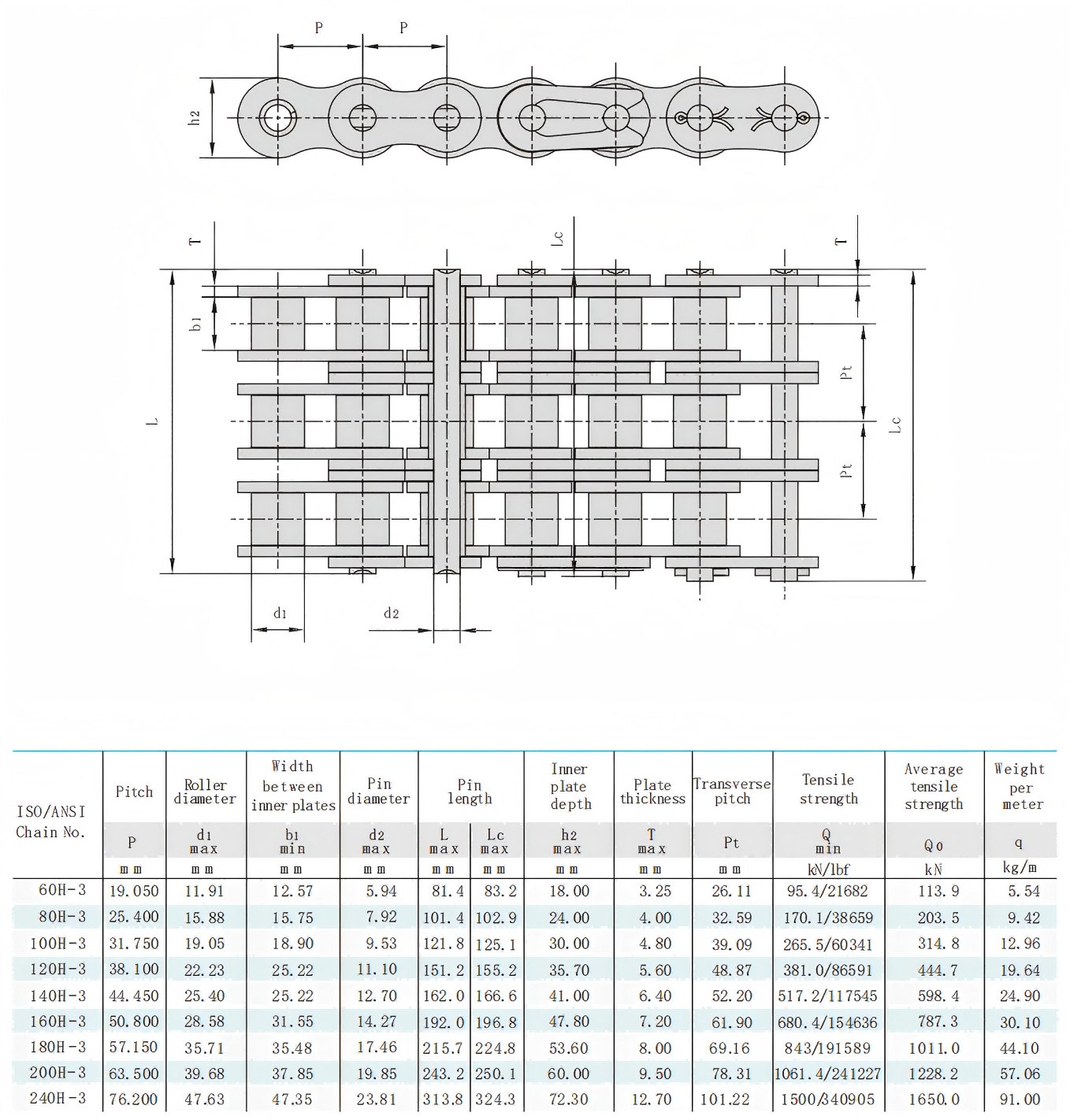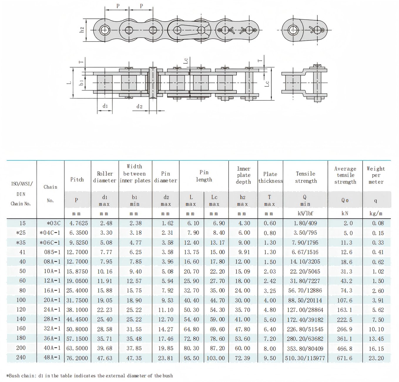 Layout of a roller chain: 1. Outer plate, 2. Inner plate, 3. Pin, 4. Bushing, 5. Roller